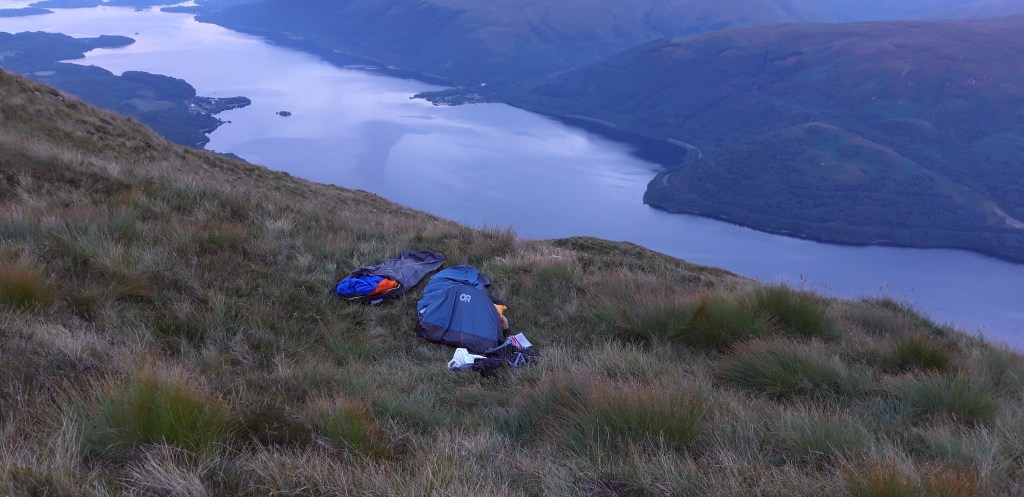Camping on shoulder of Ptarmigan, overlooking Loch Lomond. August 2022.